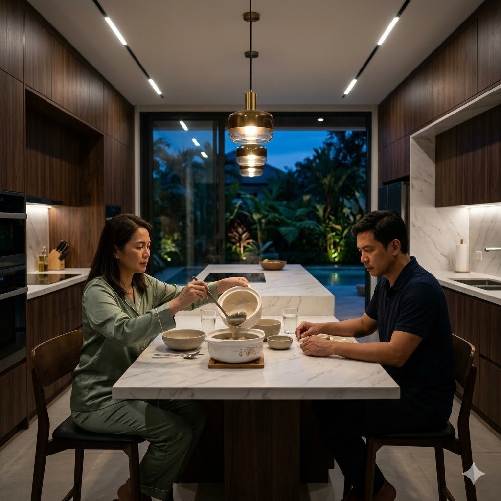 Mainit pa ang sabaw. Umaakyat ang singaw na may amoy ng sampalok at bagong hiwang kangkong. Tahimik ang maliit naming kusina sa condo sa Mandaluyong. Ang tanging maririnig ay ang tunog ng kutsara sa mangkok at ang mahinang ugong ng aircon.