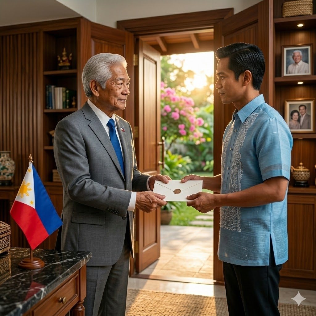 Sa labas ay nakatayo ang isang matangkad na lalaki na nakasuot ng mamahaling kulay-abong suit. Ang makintab niyang sapatos ay tila hindi bagay sa lumang doormat ng kanilang maliit na bahay.