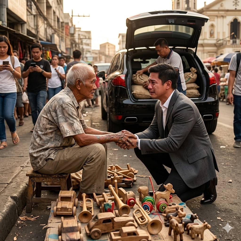 ISANG MATANDANG LALAKI ANG NAGTITINDA NG MGA GAWANG-KAMAY NA LARUANG KAHOY SA BANGKETA ARAW-ARAW KAHIT WALA NANG BATANG BUMIBILI DAHIL PURO CELLPHONE NA ANG USO. TUWING BIYERNES, HUMIHINTO ANG ISANG MAGARANG KOTSE AT BINIBILI NG ISANG BINATA ANG LAHAT NG TINDA NIYA