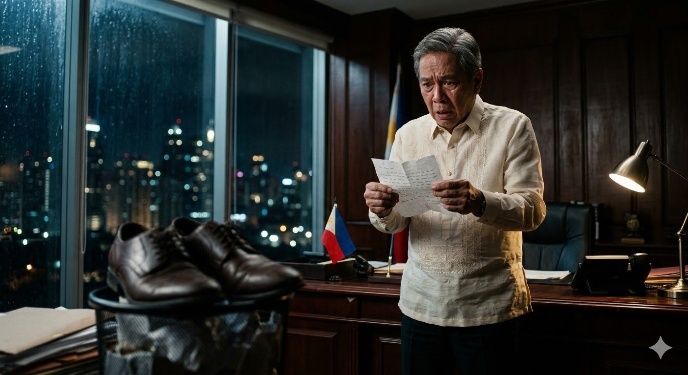 Habang nagliligpit si Don Alfonso ng kanyang mesa bago umuwi, napansin niya sa loob ng trash bin ang isang maliit na papel na nakaipit sa loob ng sapatos na itinapon niya.