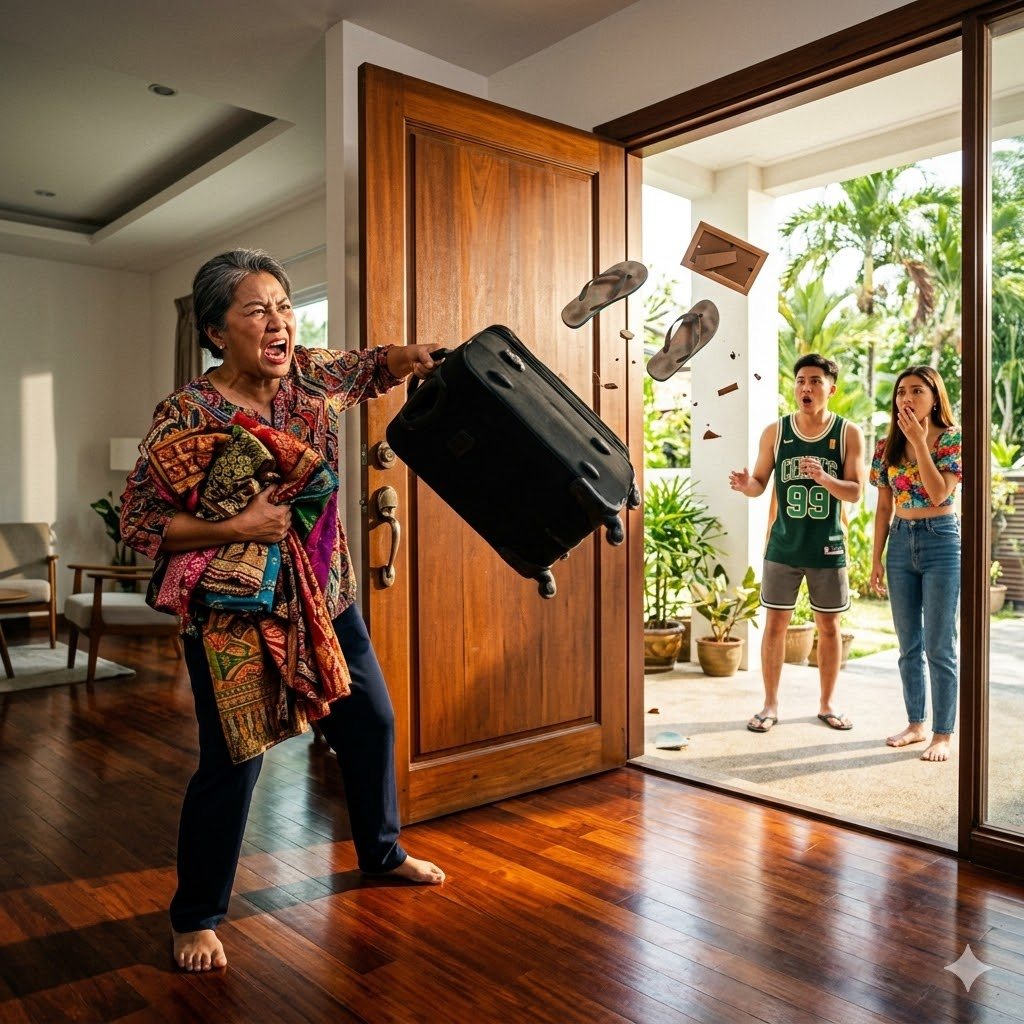 Huminto siya nang makita ang eksena: ang babae sa sofa… ako sa harap niya… at ang mga gamit niyang nakatambak sa labas ng gate.